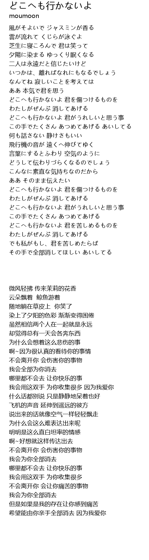 | [01:33.730] | どこへも行かないよ 君がうれしいと思う事 |
