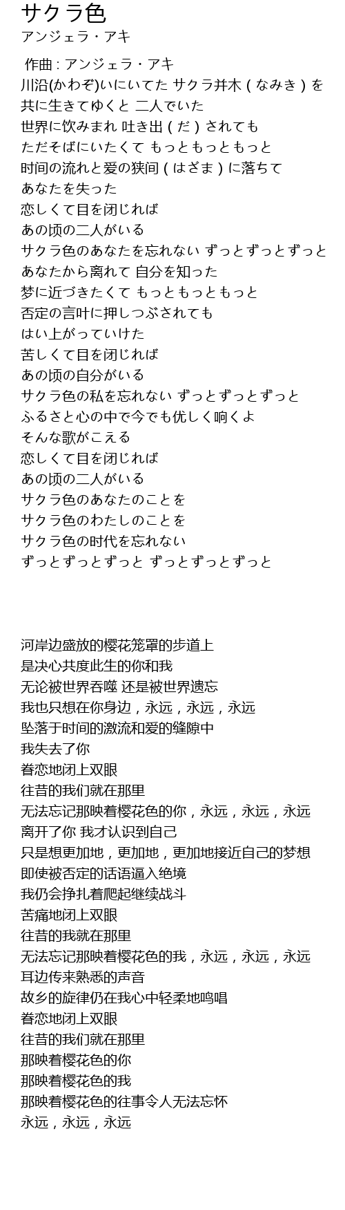 | [01:43.170] | サクラ色のあなたを忘れない ずっとずっとずっと |