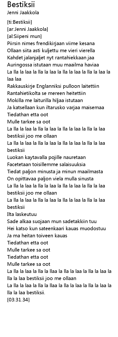 lla la laa bestiksii joo me ollaan |