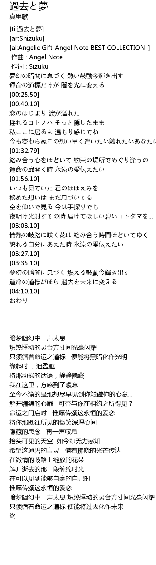 | [03:58.43] | yùn mìng dào biāo guò qù wèi lái biàn |