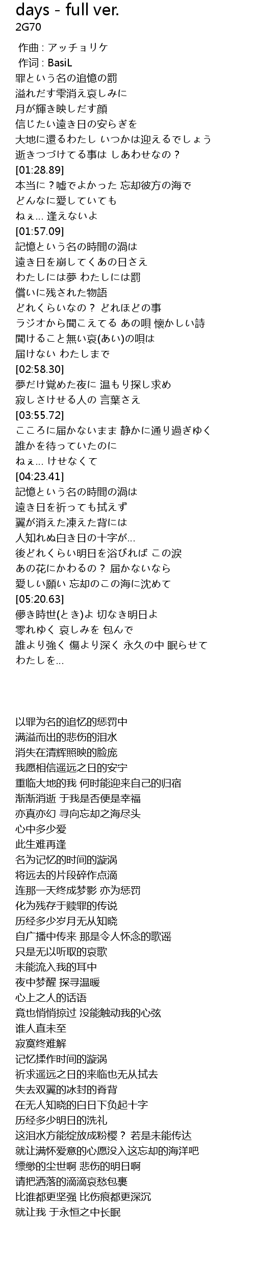 | Song | days - full ver. |