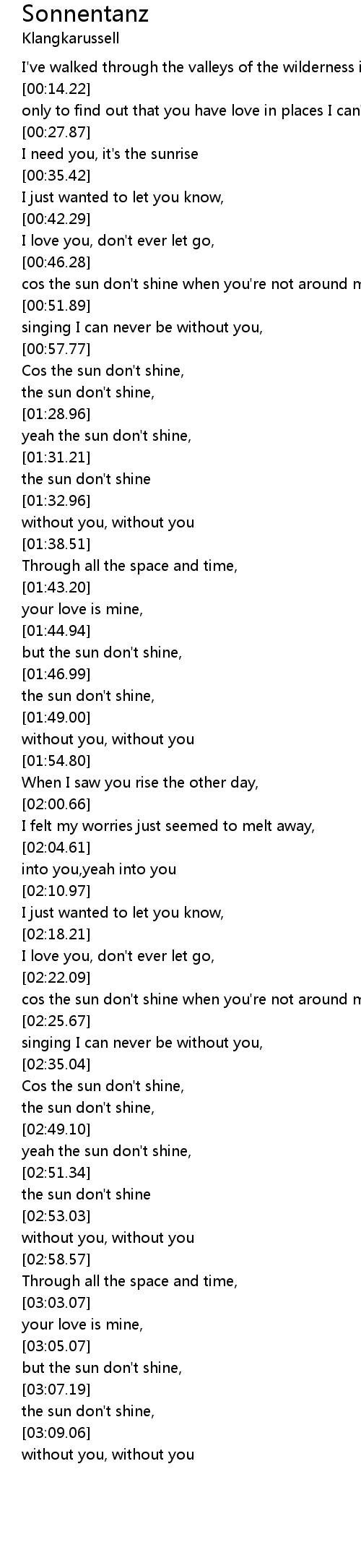 cos the sun don't shine when you're not around mine, |