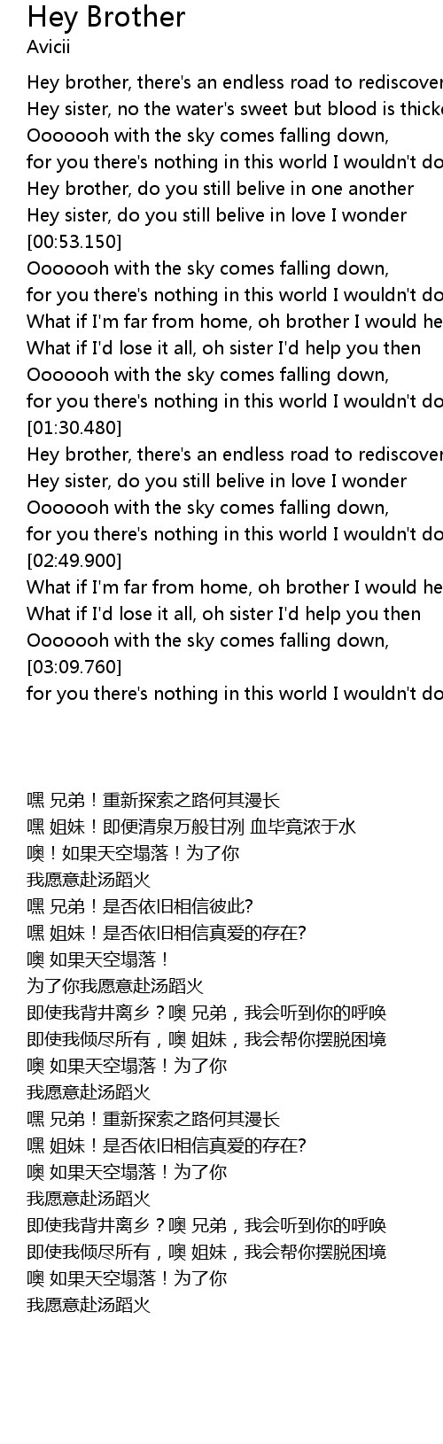 Hey brother, there's an endless road to rediscover |