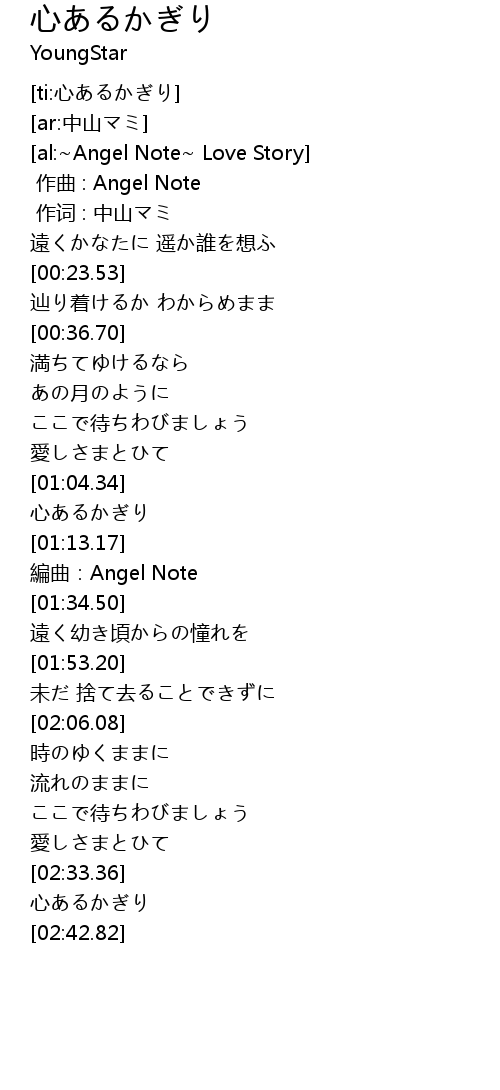 | [01:40.16] | 遠く幼き頃からの憧れを |