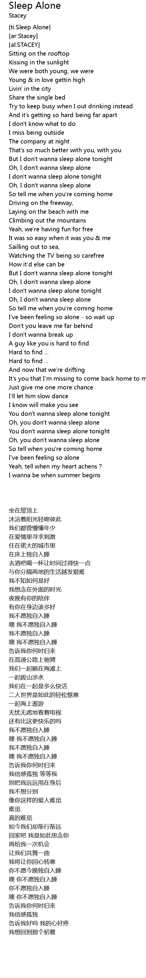 | [01:07.15] | Oh, I don' t wanna sleep alone |
