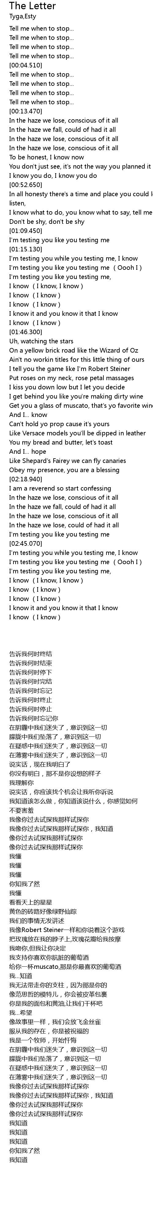 | [00:11.080] | Tell me when to stop... |