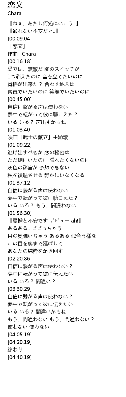 | [00:11.18] | 「恋文」 |
