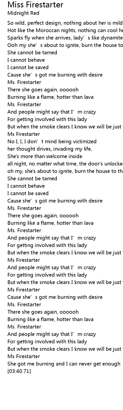 | [03:37.79] | Ms Firestarter |