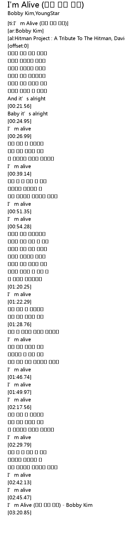 | [03:18.47] | I’m Alive (내가 사는 이유) - Bobby Kim |