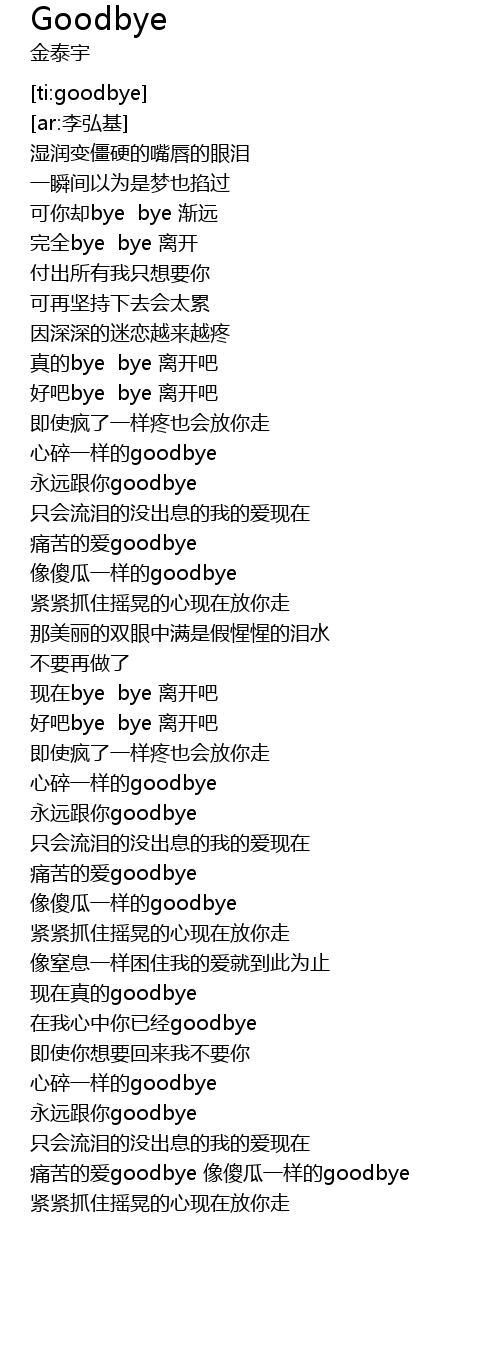 | [02:30.767] | 心碎一样的goodbye |