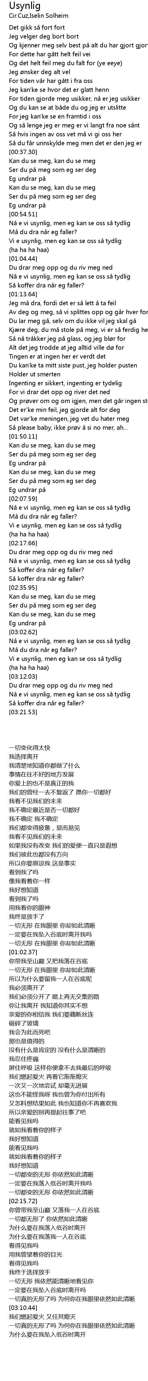 | [00:59.44] | Vi e usynlig, men eg kan se oss s tydlig |