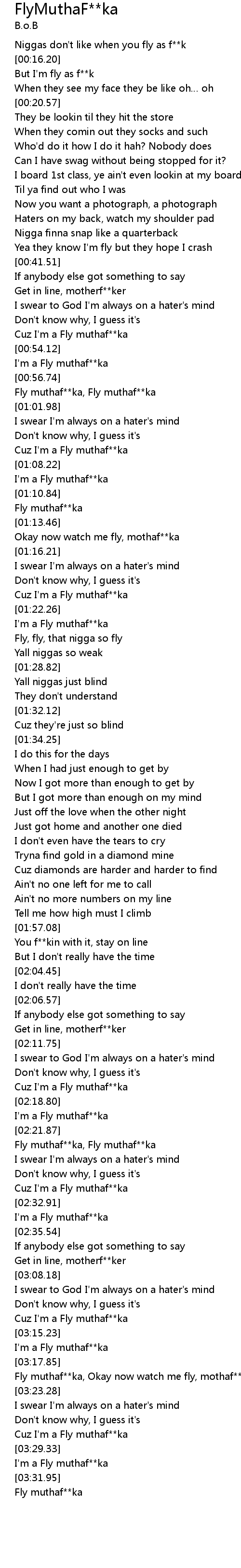 | [02:23.43] | Fly muthaf**ka, Fly muthaf**ka |