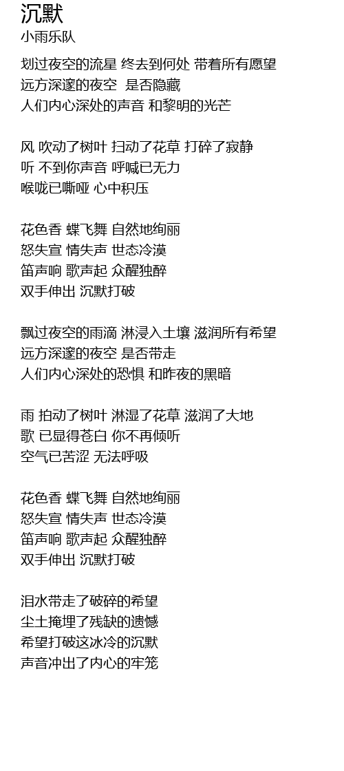 | 风 吹动了树叶 扫动了花草 打碎了寂静 | |