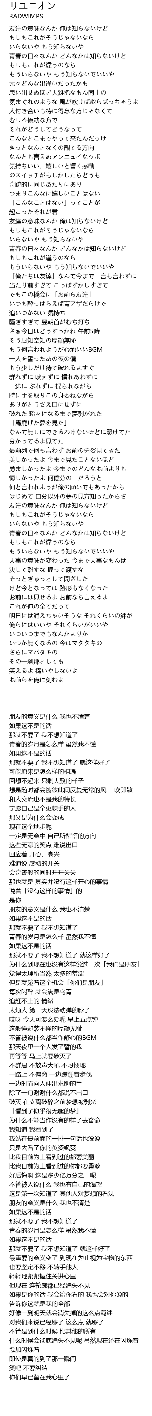 | [01:21.200] | 友達の意味なんか 俺は知らないけど |