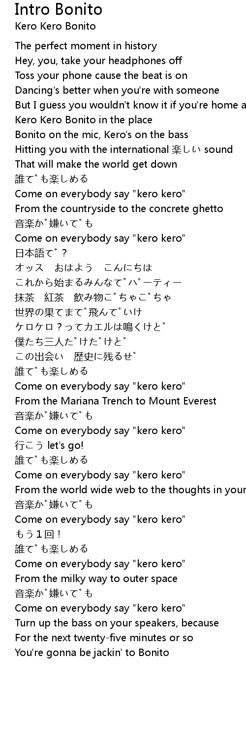 | [00:31.177] | Bonito on the mic, Kero' s on the bass |
