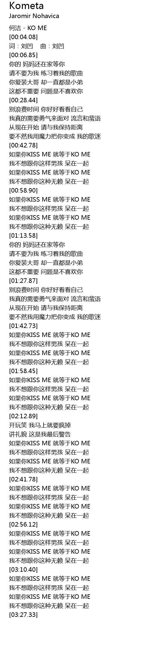 | [03:03.65] | 如果你KISS ME 就等于KO ME |