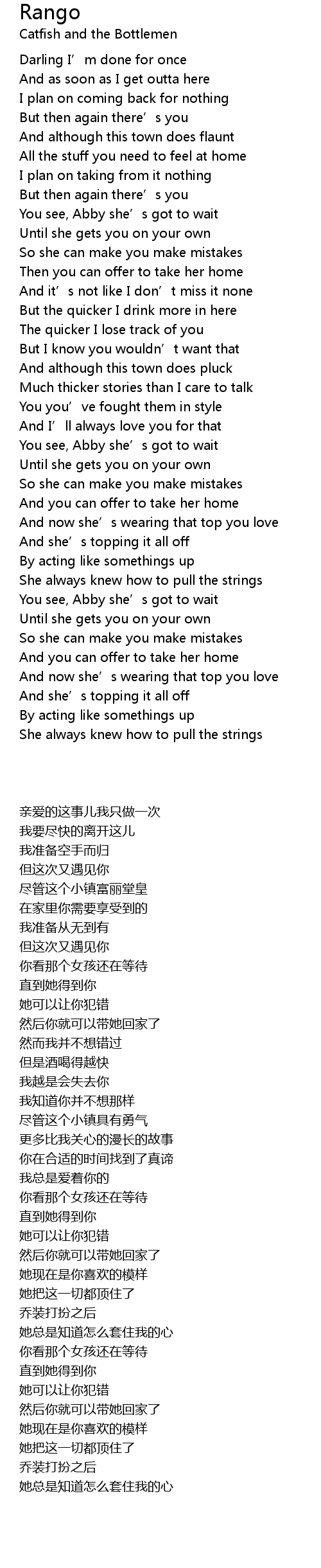 | [00:42.15] | You see, Abby she’s got to wait |