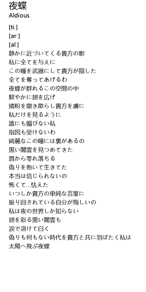 | [03:36.86] | 太陽へ飛ぶ夜蝶 |