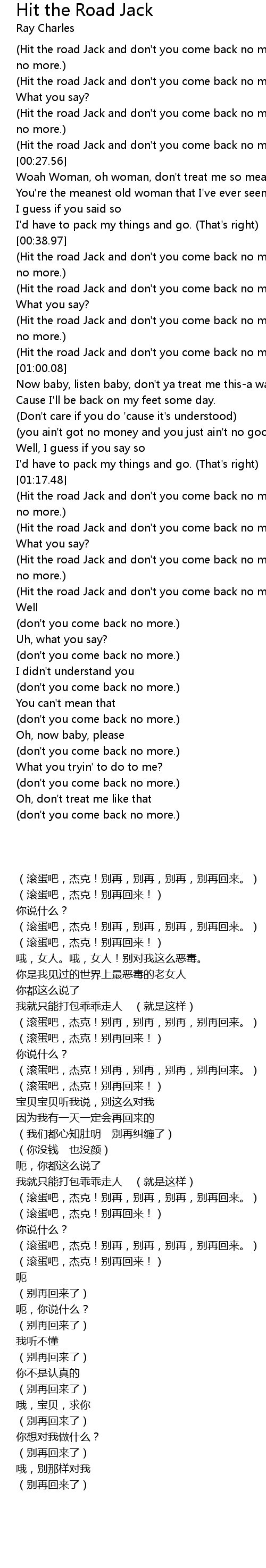(Hit the road Jack and don't you come back no more, no more, no more, no more.) |
