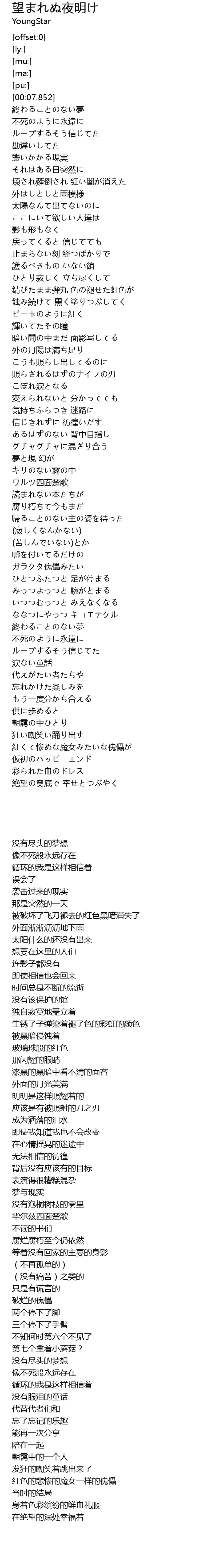 | [03:37.644] | 絶望の奥底で 幸せとつぶやく |