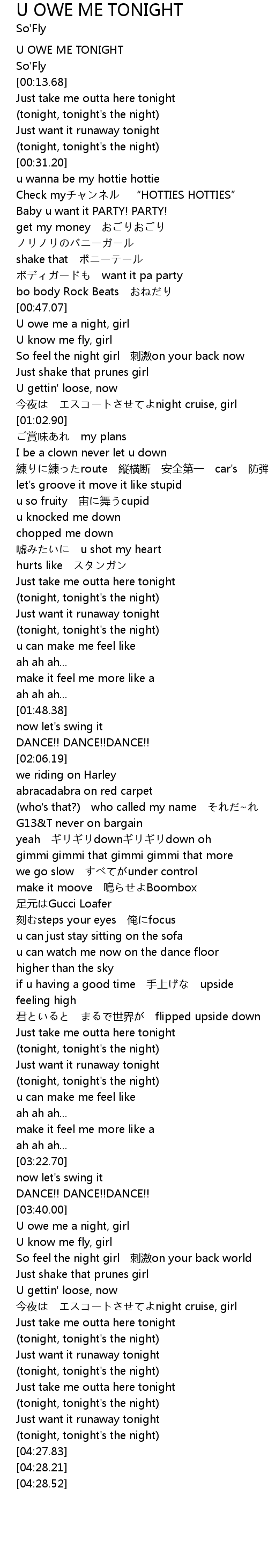 | [00:00.00] | U OWE ME TONIGHT |