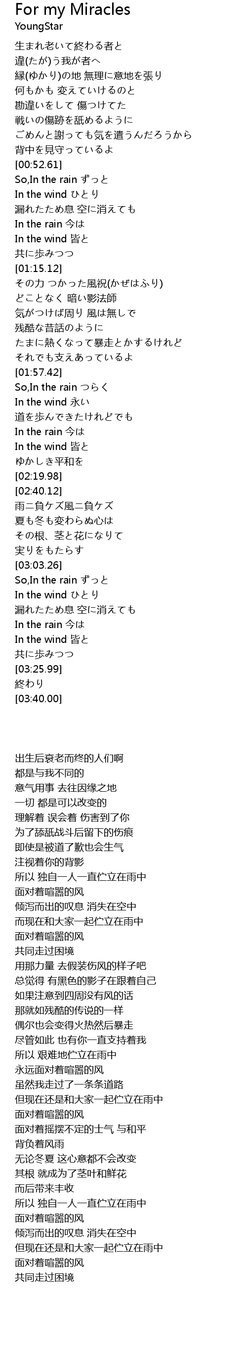 | [03:03.89] | So,In the rain ずっと |
