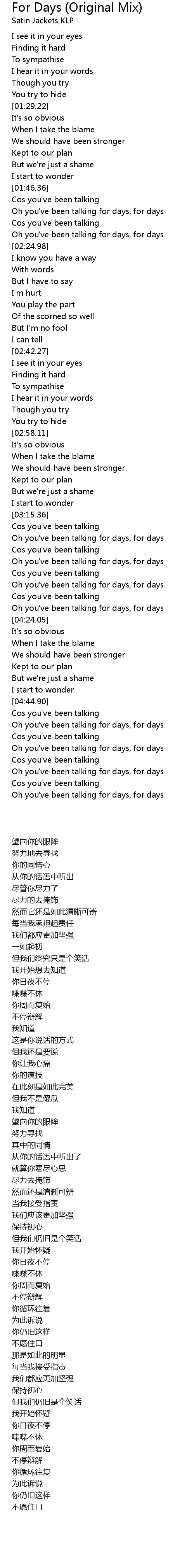 | [03:47.22] | Oh you've been talking for days, for days |