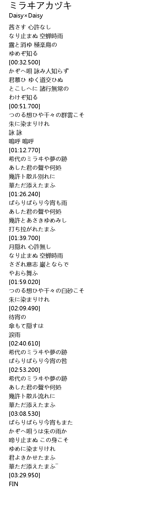 | [02:56.370] | 希代のミラヰや夢の跡 |