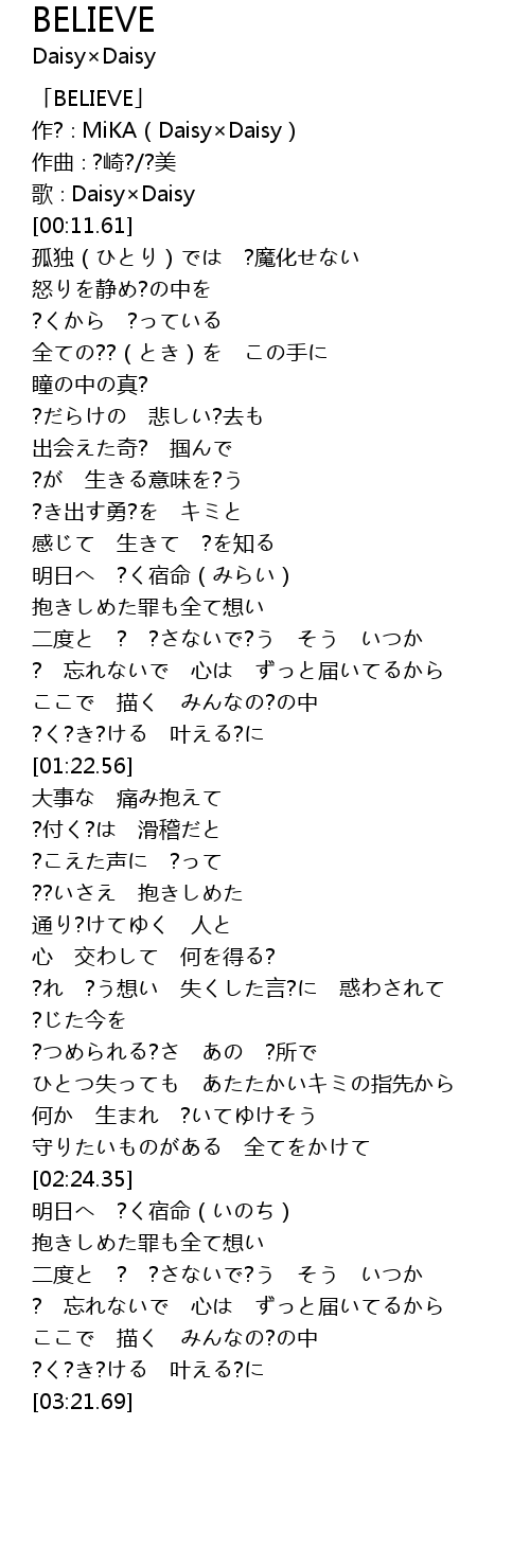| [00:03.61] | 「BELIEVE」 |