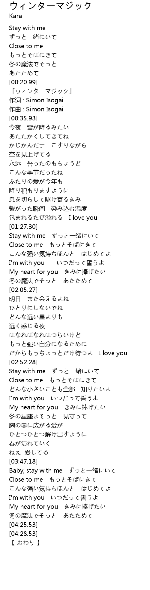 | [04:17.59] | 冬の魔法でそっと あたためて |