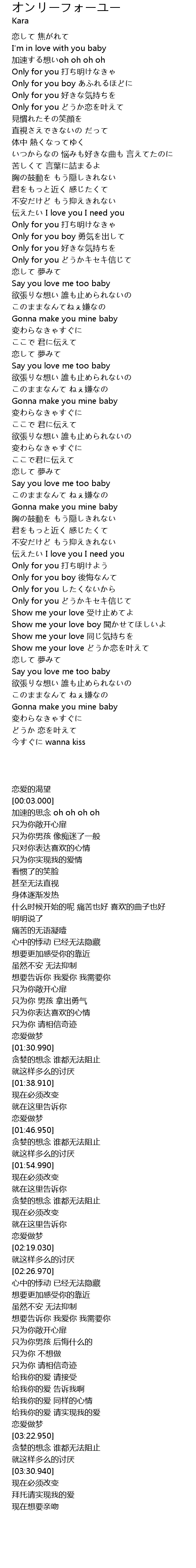| [01:16.370] | Only for you boy yǒng qì chū |
