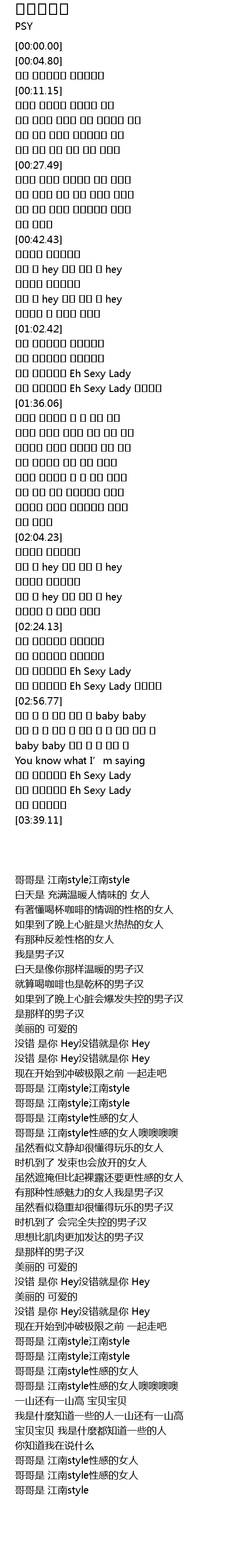 | [03:19.86] | 오빤 강남스타일 Eh Sexy Lady |
