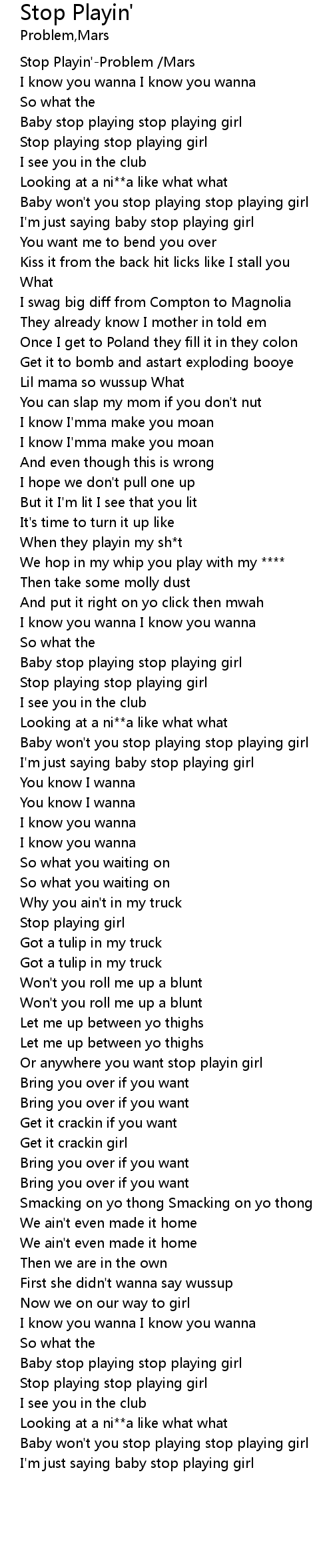 | [01:30.408] | I'm just saying baby stop playing girl |