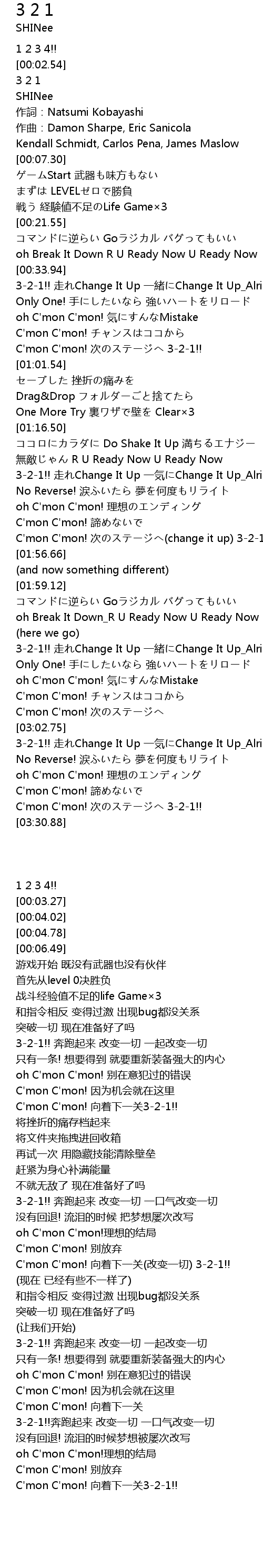 | [03:03.29] | 321!! zǒu Change It Up yī qì Change It Up_Alright ! |