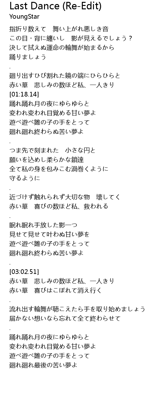 | [03:49.14] | 踊れ踊れ月の夜にゆらゆらと |