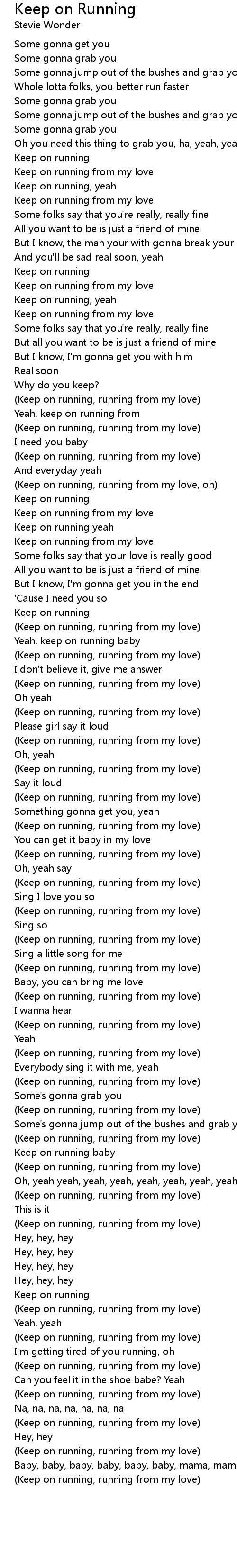 Keep on running, yeah |