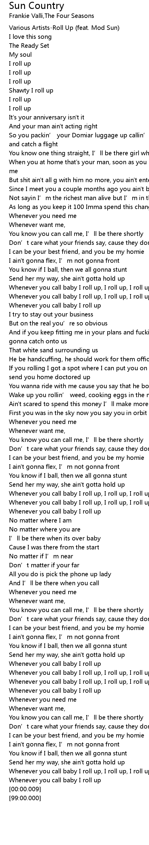 | [01:03.83] | Whenever you call baby I roll up, I roll up, I roll up |