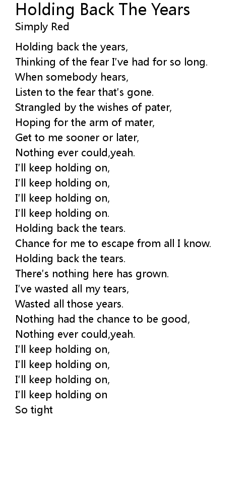 | Song | Holding Back The Years |