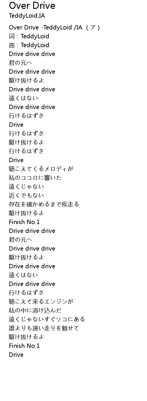 | [00:00.00] | Over Drive -TeddyLoid /IA (ア) |