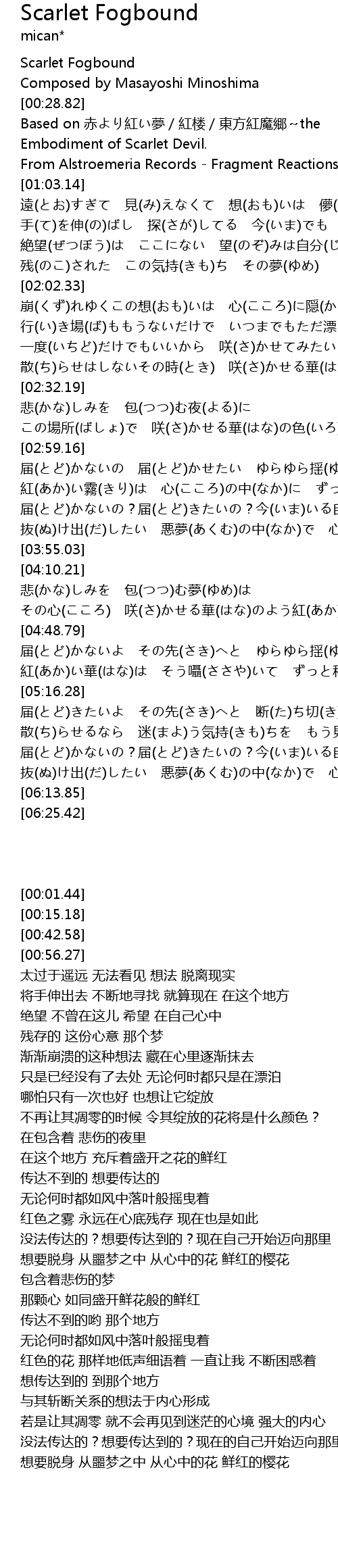 | [00:42.58] | Based on chì hóng mèng hóng lóu dōng fāng hóng mó xiāng the Embodiment of Scarlet Devil. |