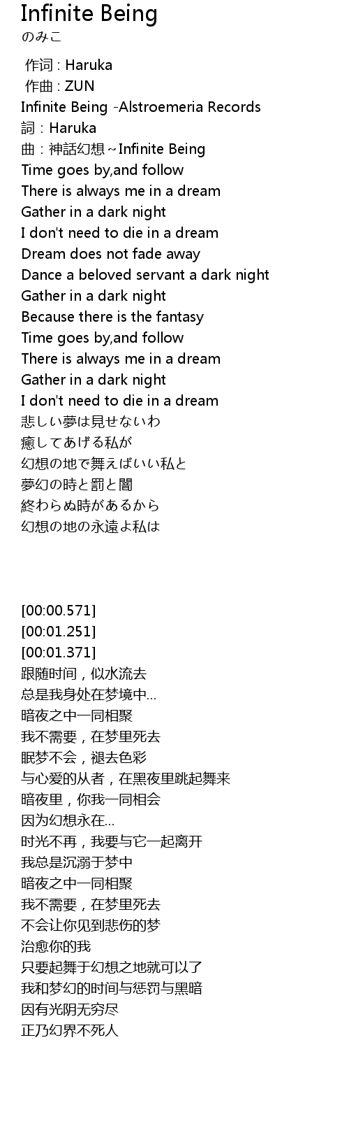 | [00:00.571] | Infinite Being -Alstroemeria Records |