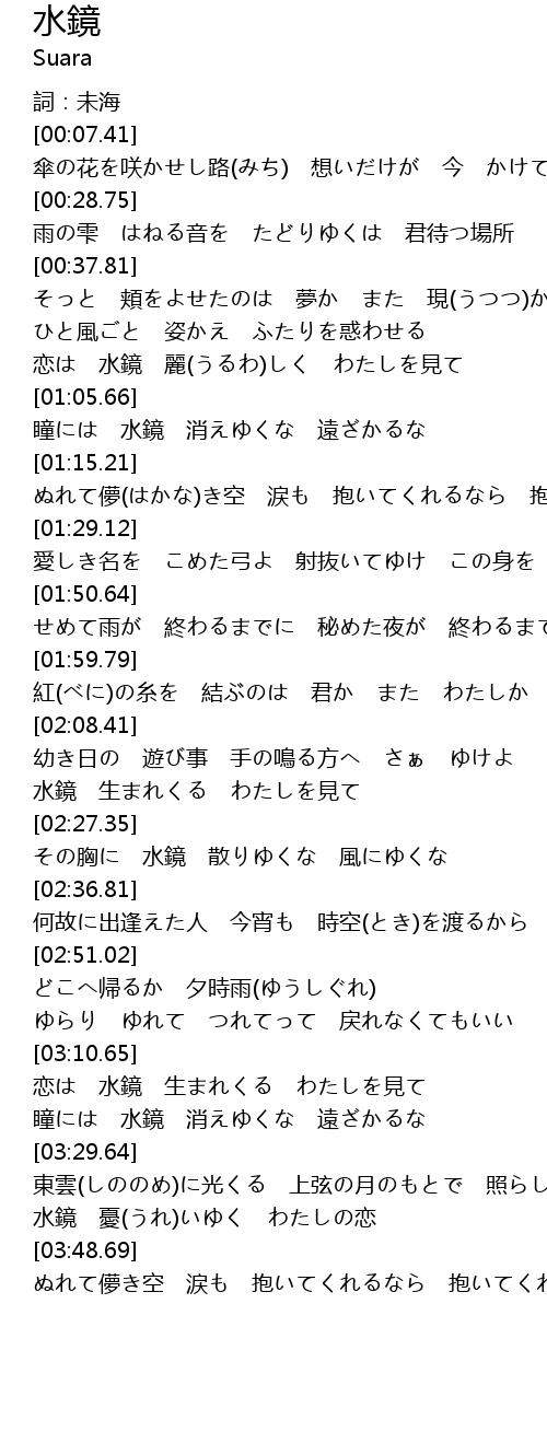 | [03:41.46] | 水鏡 憂(うれ)いゆく わたしの恋 |