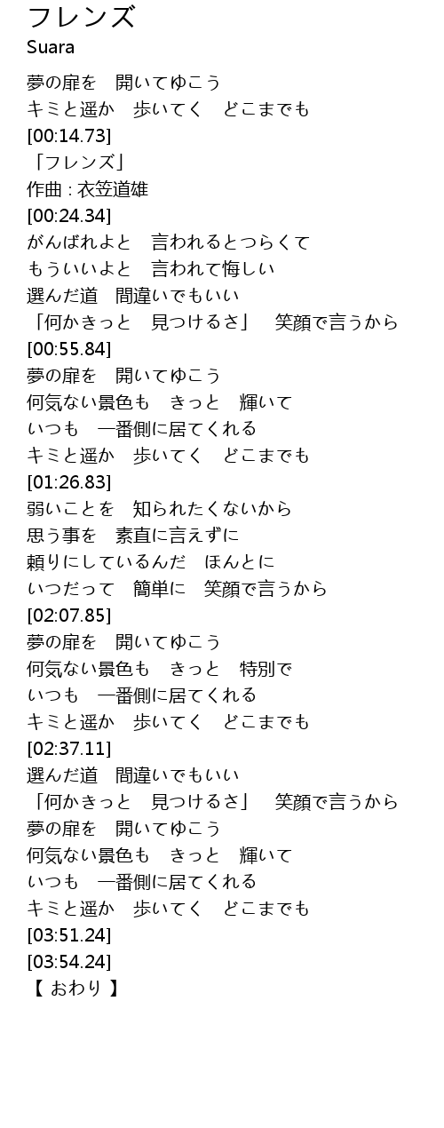 | [03:42.74] | キミと遥か 歩いてく どこまでも |