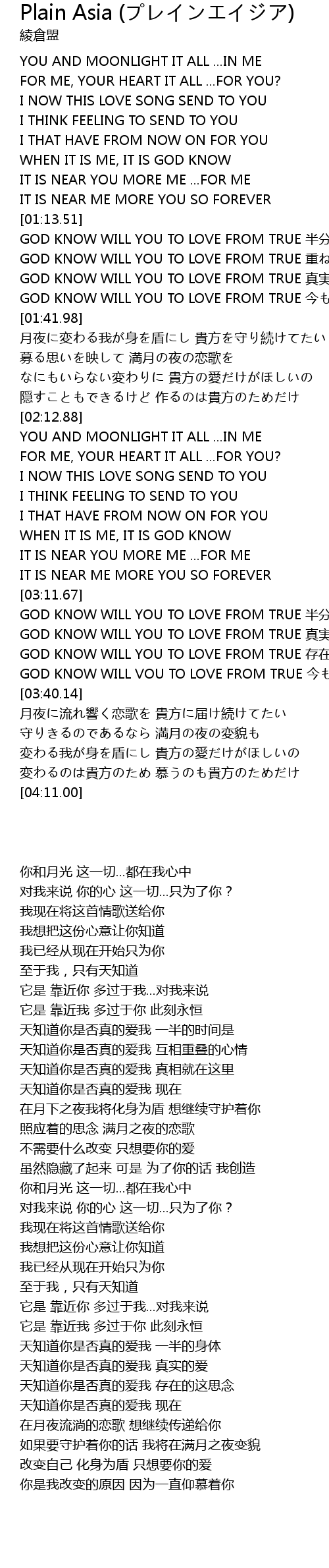 | [03:19.12] | GOD KNOW WILL YOU TO LOVE FROM TRUE zhēn shí ài |