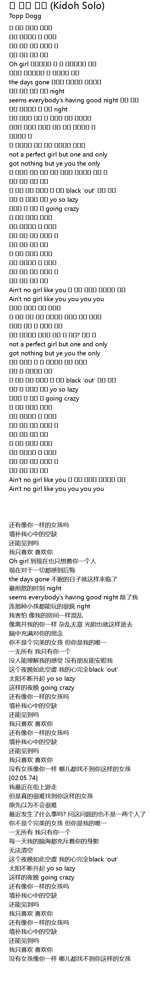 | [01:59.26] | Ain't no girl like you 너 같은 여자는 어디에도 없어 |