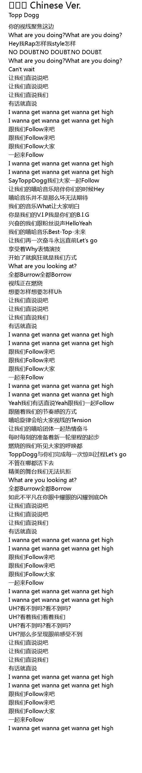 | [02:08.467] | ToppDogg与你们完成每一次惊叫过程Let's go |