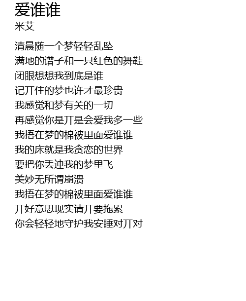 | wǒ wǔ zài mèng de mián bèi lǐ miàn ài shuí shuí | |