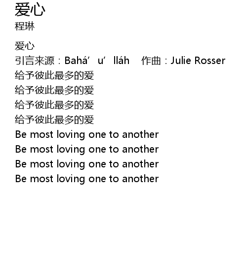 | 引言来源:Bahá’u’lláh 作曲:Julie Rosser | |