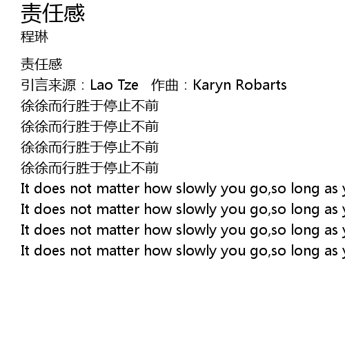 | 引言来源:Lao Tze 作曲:Karyn Robarts | |