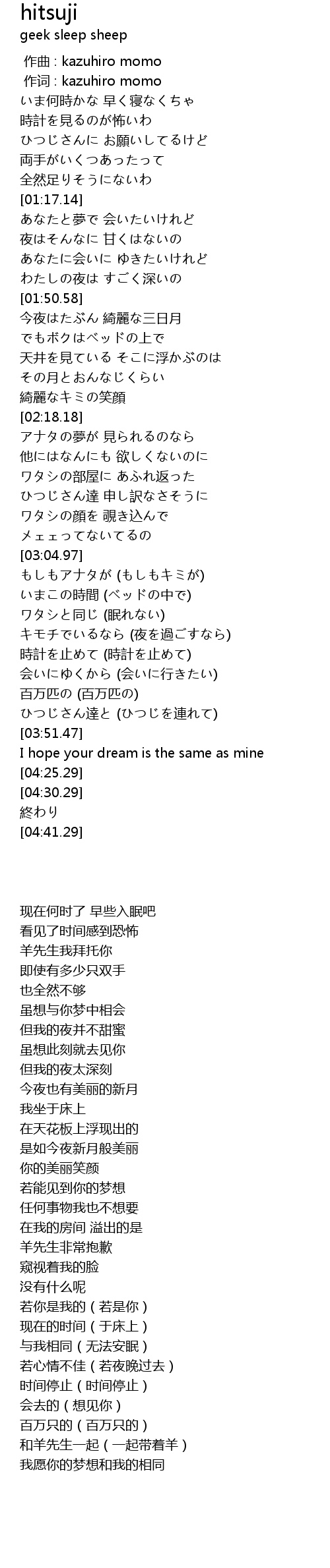 | [01:02.65] | ひつじさんに お願いしてるけど |